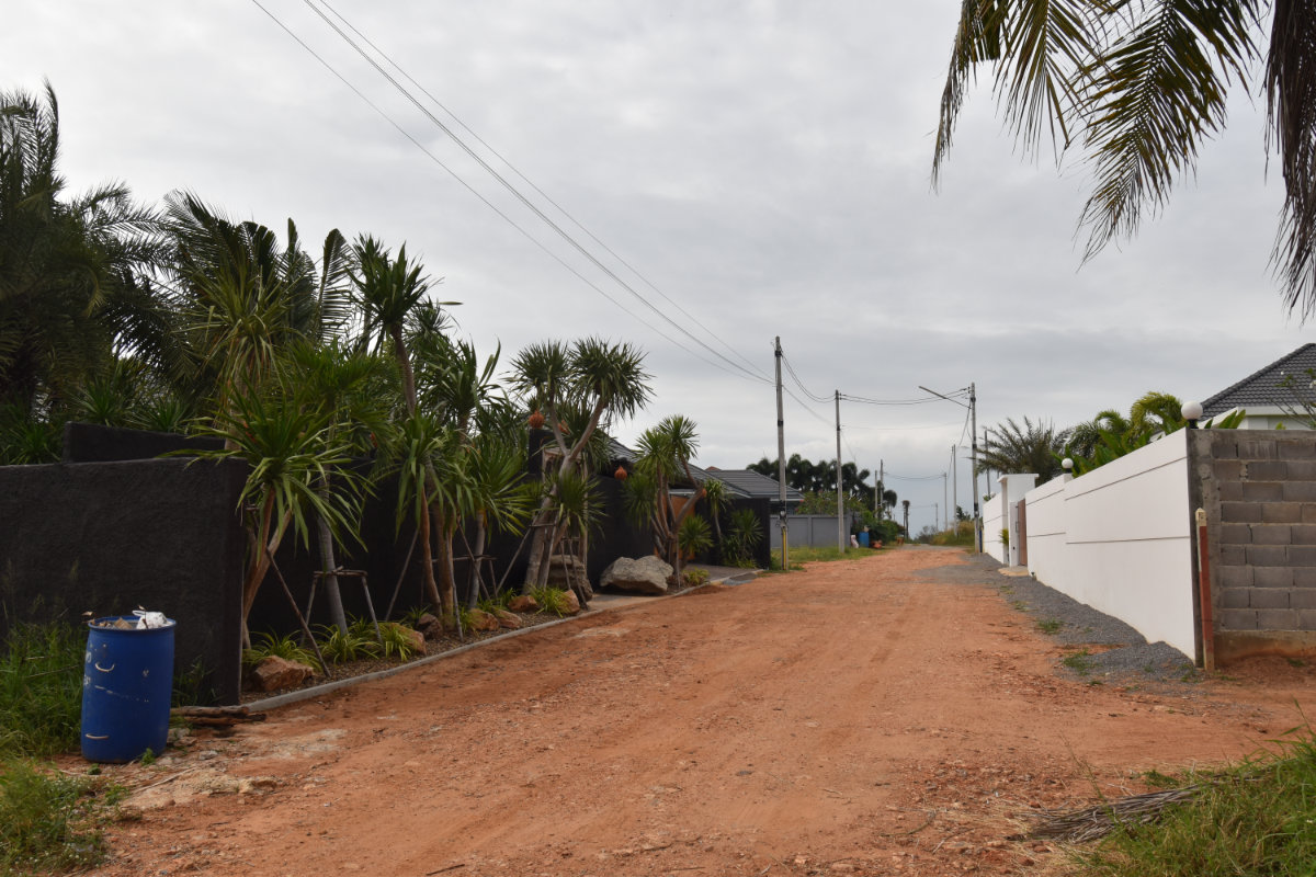 Only 1 lot left available, so reserve yours soon. The road has 6 homes located on it, which enhances the sense of community. This road is part gravel and part paved already. In the future, this road would be paved completely to the end, increasing the value of your investment significantly. Now is the perfect time to purchase this cheap land for sale in Pranburi, Thailand, as developments in the area are on the rise, making it an opportune moment to secure your piece of paradise.